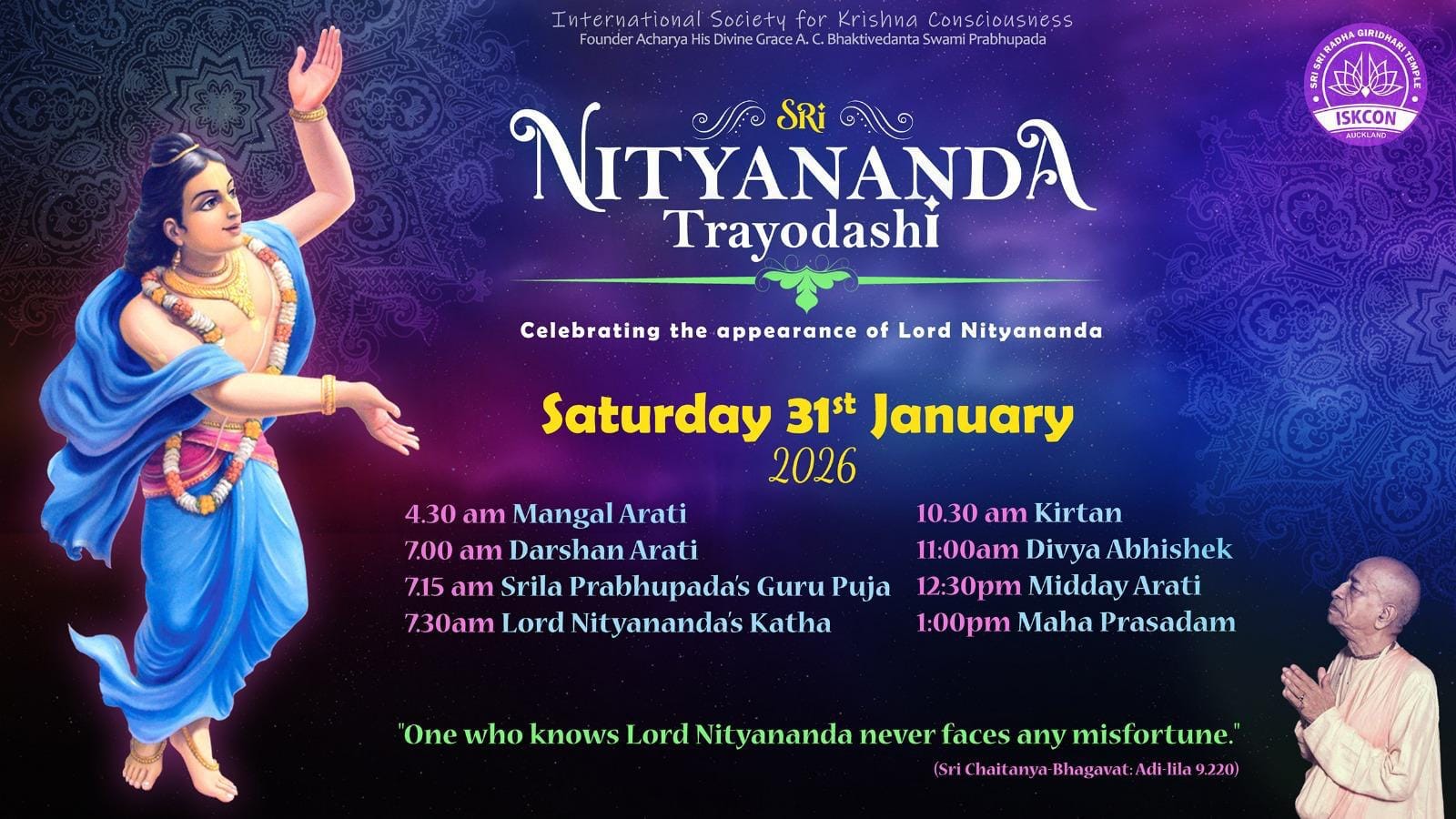 Hare Krishna. Celebrate Nityananda Trayodashi - the divine appearance day of Sri Nityananda Prabhu with us on Saturday 31st January 2026 at Sri Sri Radha Giridhari. All are welcome!