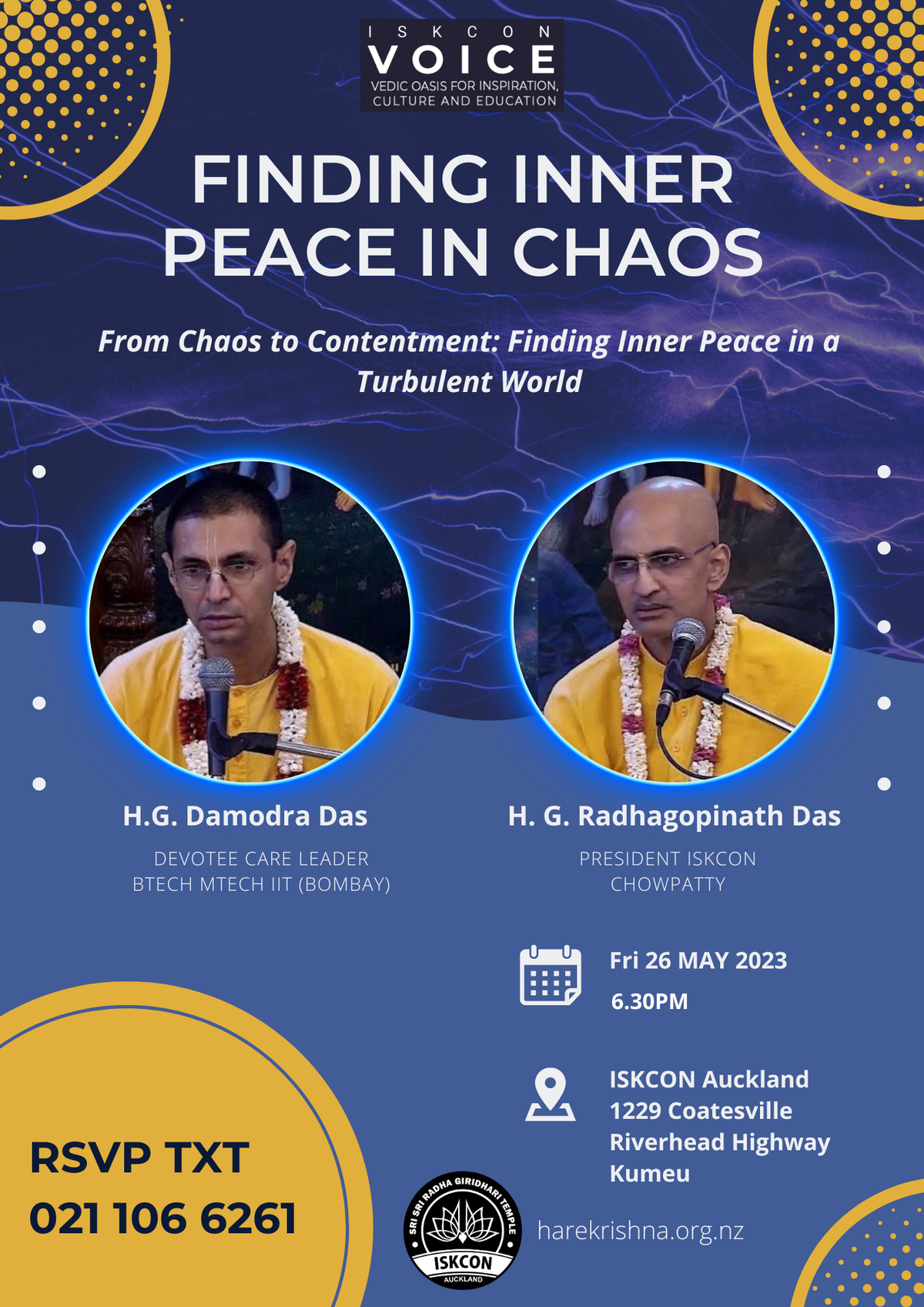 By renowned speaker's H.G Damodra Das and H.G Radhagopinath Das will share invaluable wisdom on unlocking inner peace amidst life's chaos.