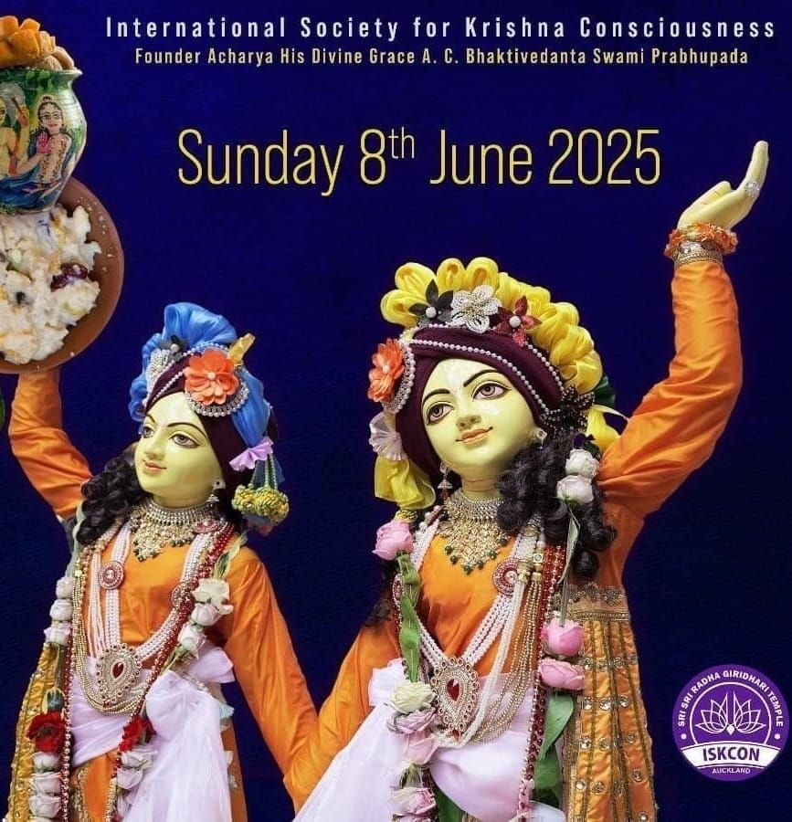 Hare Krishna! Join us for the joyous Panihati Cida Dahi Festival at ISKCON Auckland on Sunday, June 8, 2025, starting from 11:00 am. This annual festival commemorates the historic meeting between Lord Nityananda and Raghunatha dasa Goswami at Panihati, West Bengal. For the festival program please see the poster....
