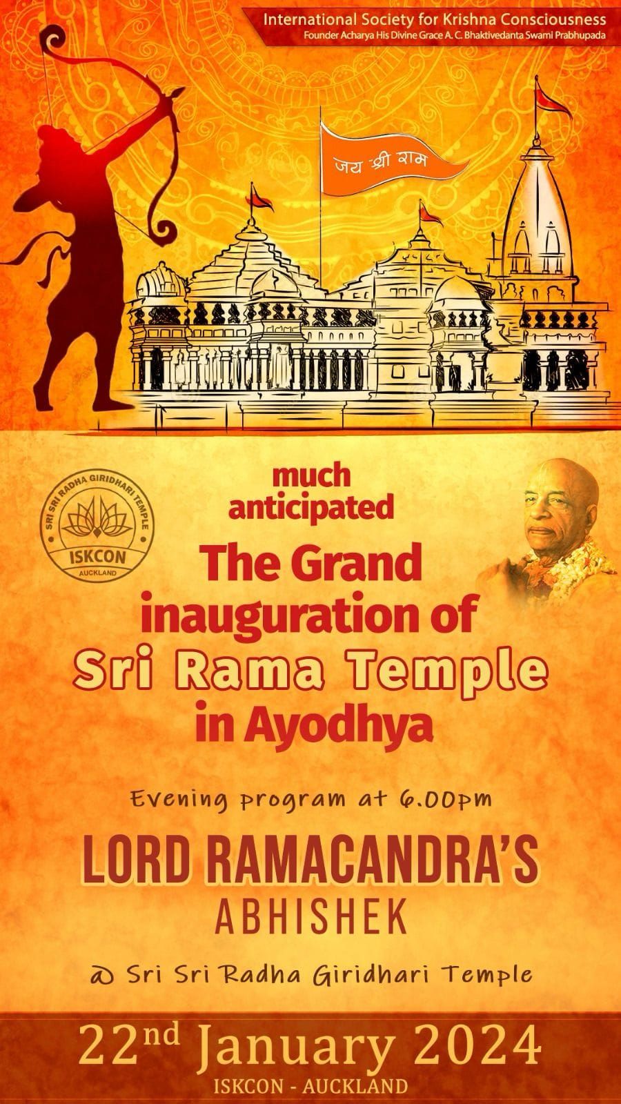 Celebrate the Grand opening of the Ayodhya Temple with a special abhishek of Lord Sri Ramacandra !