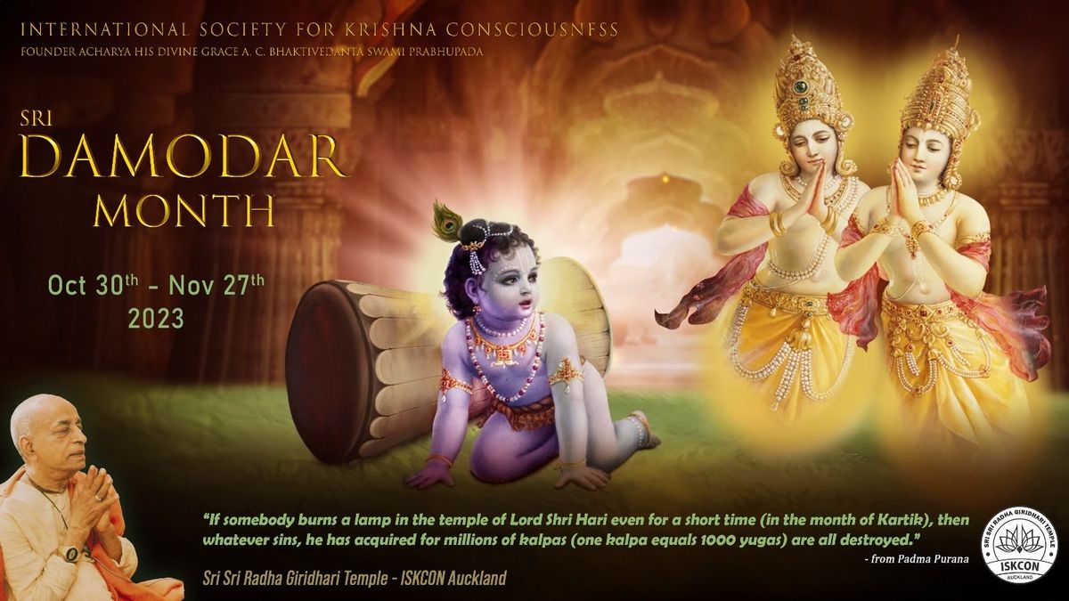 We invite you to observe the Sri Damodar Month, a time of heightened devotion and spirituality, from October 30th to November 27th, 2023. This auspicious month is dedicated to deepening your spiritual connection and offering heartfelt prayers to Lord Krishna.