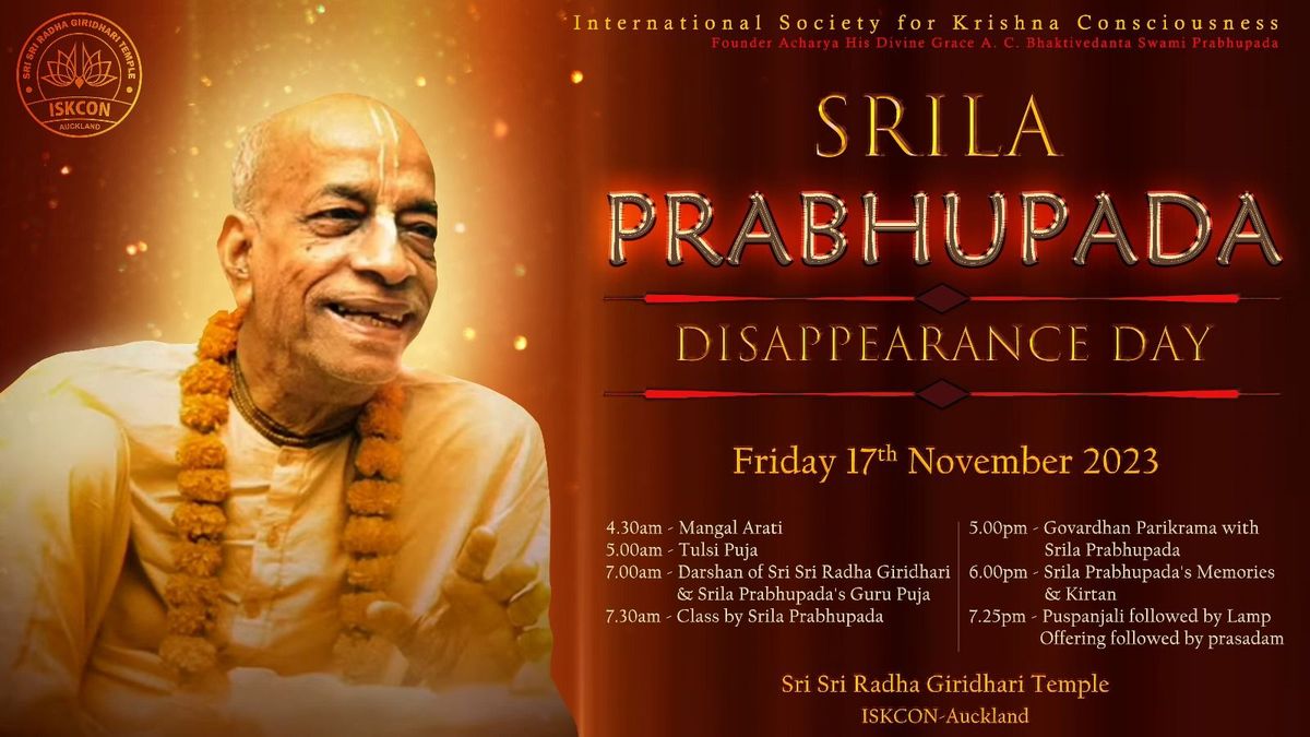 Join us on Friday, November 17th, 2023, as we honor the life and teachings of Srila Prabhupada on his Disappearance Day. This special festival is dedicated to remembering and celebrating the legacy of our beloved Founder-Acharya.