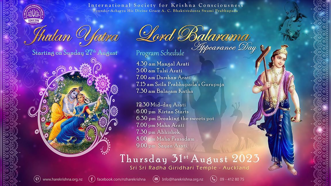 Get ready to immerse yourself in the joyous festivities of Jhulan Yatra and celebrate the auspicious appearance day of Lord Sri Balarama!